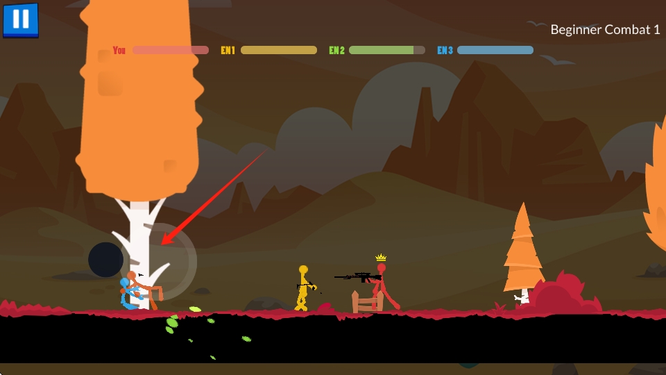 3、滑动摇杆控制火柴人自由的行动。