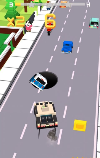 1、操控汽车吞噬:在城镇中自由移动汽车,寻找并吞噬其他小汽车和可吸取物品,实现自身成长与变强。