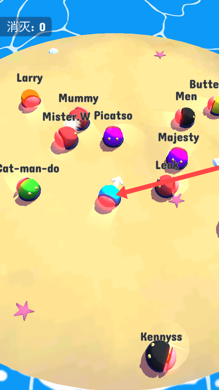 3、体积制胜策略:利用体积变大的机制,制定对战策略,体积越大在碰撞中越有优势,你可通过不断撞击对手增大体积,从而成为最终的胜利者。