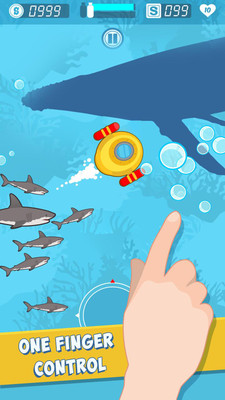 水底大作战开启新奇的海底冒险之旅,你驾驶黄色潜水艇闯入神秘海底世界,在躲避鲨鱼追击的同时,巧妙引诱鲨鱼互相撞击,还要不断收集氧气维持生存,作品以独特玩法考验你敏捷性,带来紧张刺激又充满趣味的水下冒险体验,开启一场难忘的水下冒险之旅。