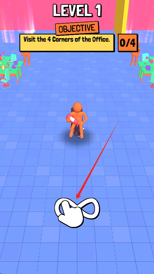 1、化身人员启挑战:玩家化身工作人员,坐在椅子上开启冒险闯关挑战,准备完成各种任务。