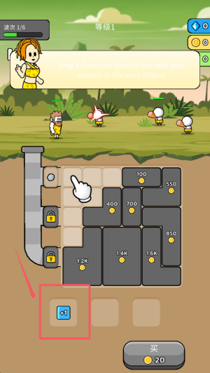 1、收集金币与解锁方块,玩家需要收集金币,解锁不同形状的方块,为合成武器做准备。