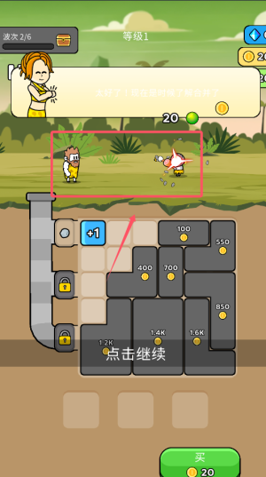 2、合成武器与增强实力,通过移动方块到合适的位置,合成强大的武器,增强战士的攻击力。