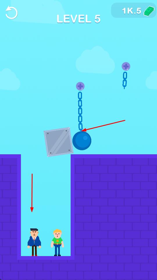1、切断铁链,使铁球击中人。