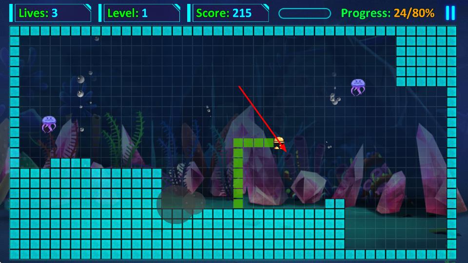 1、多样敌人类型:拥有四种敌人,果冻鱼在空处移动,螃蟹围绕块空间移动,海蛇Xon围绕墙壁移动,球鱼人能在空处移动且可吃墙壁,增加游戏挑战。