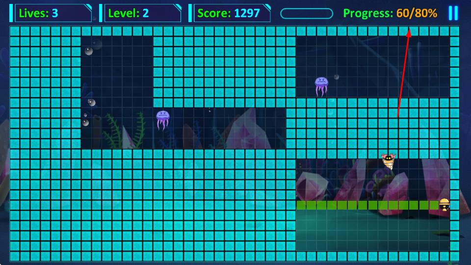 2、合理捕获区域:将玩家移至空白区域再返回墙壁捕获该区域,避免怪物触碰英雄或跟随墙壁,完成区域捕获任务。