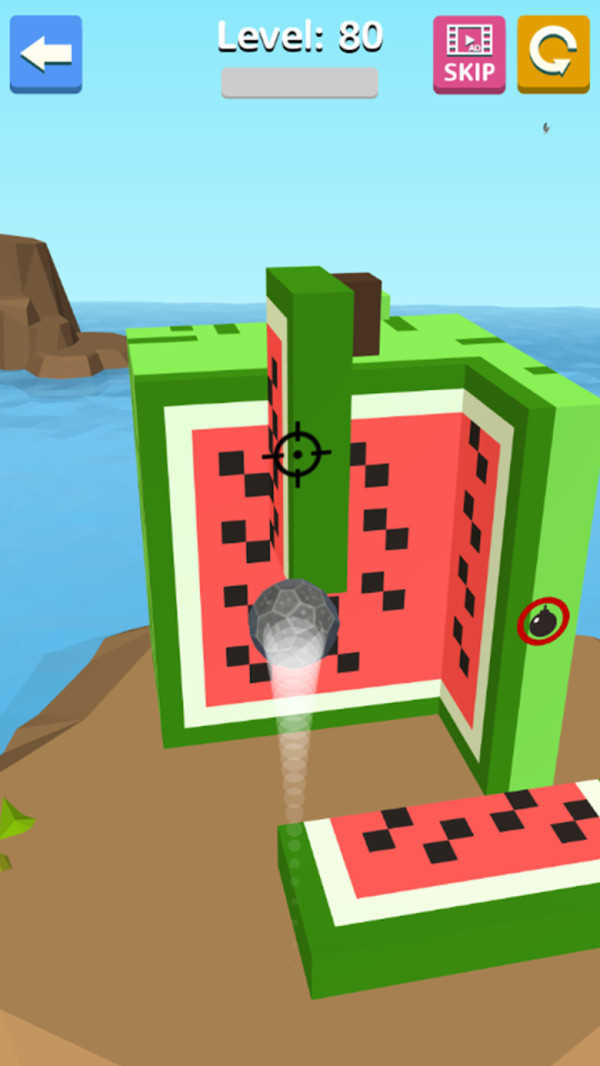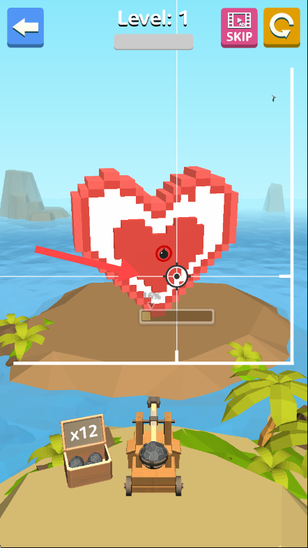 就是爱破坏是一款以像素破坏为核心玩法的解压休闲佳作,玩家化身破坏狂人操控投石车,对准对面由方块搭建的物体发起轰击,通过击中隐藏炸弹引发爆炸,在有限炮弹次数内彻底击垮目标释放压力,每关都呈现不同造型的像素建筑,从呆萌小屋到复杂机械,玩家需精准调整投石角度,利用物理抛物线原理直击要害。