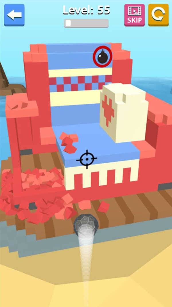 2、有限炮弹策略轰击:每关炮弹次数有限,需在限制内合理分配每次发射,优先攻击建筑支撑结构或炸弹所在区域,引发连锁崩塌效果,最大化破坏效率。