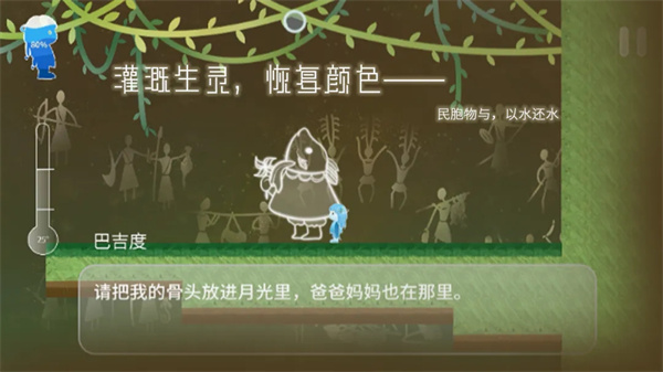 3、灌溉救赎玩法:通过收集水分子并以自身为容器灌溉荒芜生灵,使其恢复生机色彩,这种舍己为人的机制赋予游戏深刻的生态主题与情感共鸣。