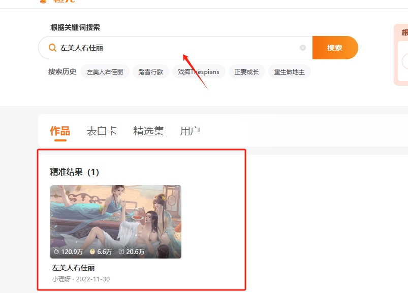 3、在橙光首页的搜索栏中输入你想玩的游戏名称,点击搜索结果中的对应作品图标,即可立即进入在线游玩界面开始畅玩。