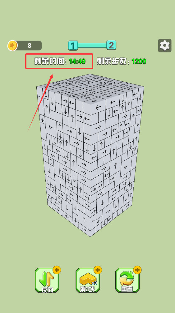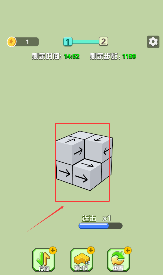 1、观察箭头方向,规划消除策略,优先处理关键方块,逐步打通移动通道。