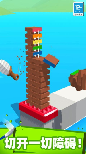 1、简单易上手的操作,玩家只需使用一把刀具,轻松解决路上遇到的各种物体,切割后即可获得分数。