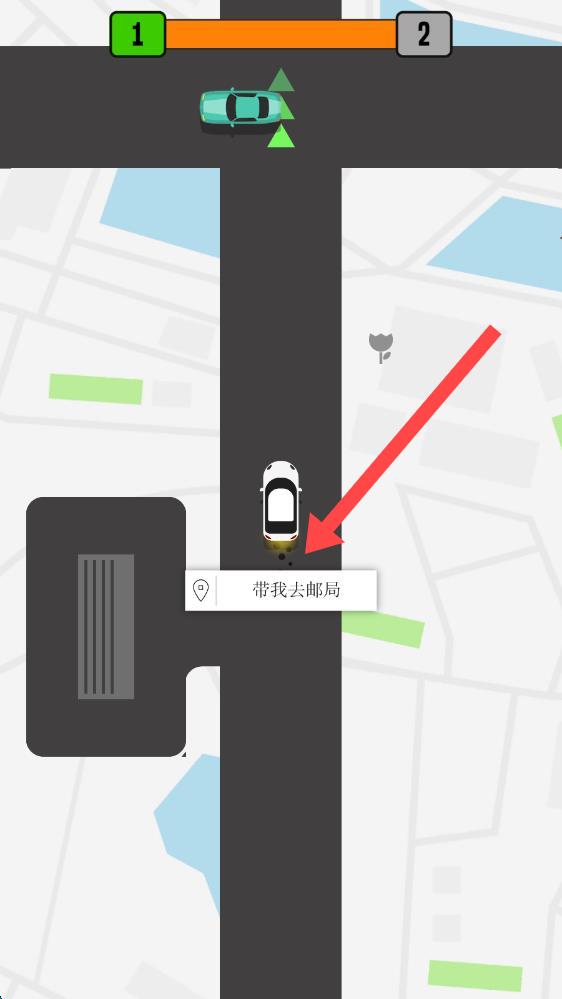 2、第一关的游戏目标是带我到邮局,玩家滑动屏幕控制车辆运行,根据绿色箭头的方向前往目的地。