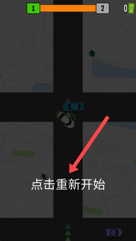 3、由于玩家在前往目的地的过程中,不幸撞上了其他忘玩家的车辆导致车辆报废,不得已【点击重新开始】重新游戏。