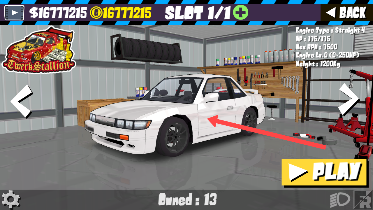 2、进入车库后你可以点击左右箭头选择你想要改装的车辆,然后直接点击车辆。