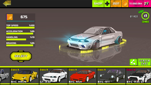 3、丰富车辆选择:提供超三十辆漂移车,每辆车都有独特性能与外观,满足玩家对不同风格赛车的喜好,还能进行无限的车辆设计,打造专属梦幻赛车。