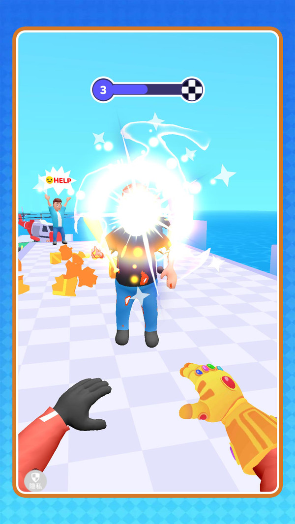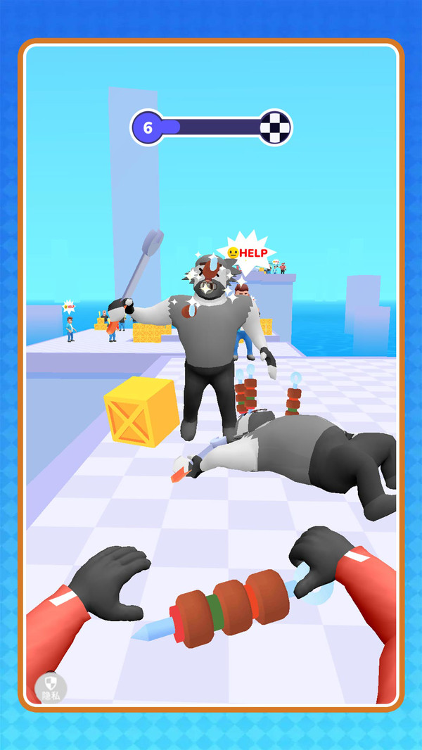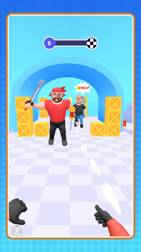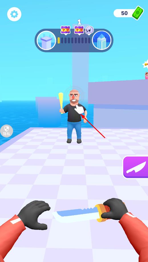 2、点击匪徒的头部即可发射刀具,正中匪徒的头部,正式开启游戏的游玩。