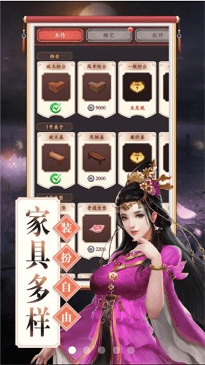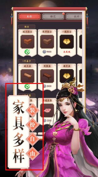 2、招募各类伙计负责不同工作,装饰家中换上新家具,布置店内环境,提升酒楼吸引力迎接客人。