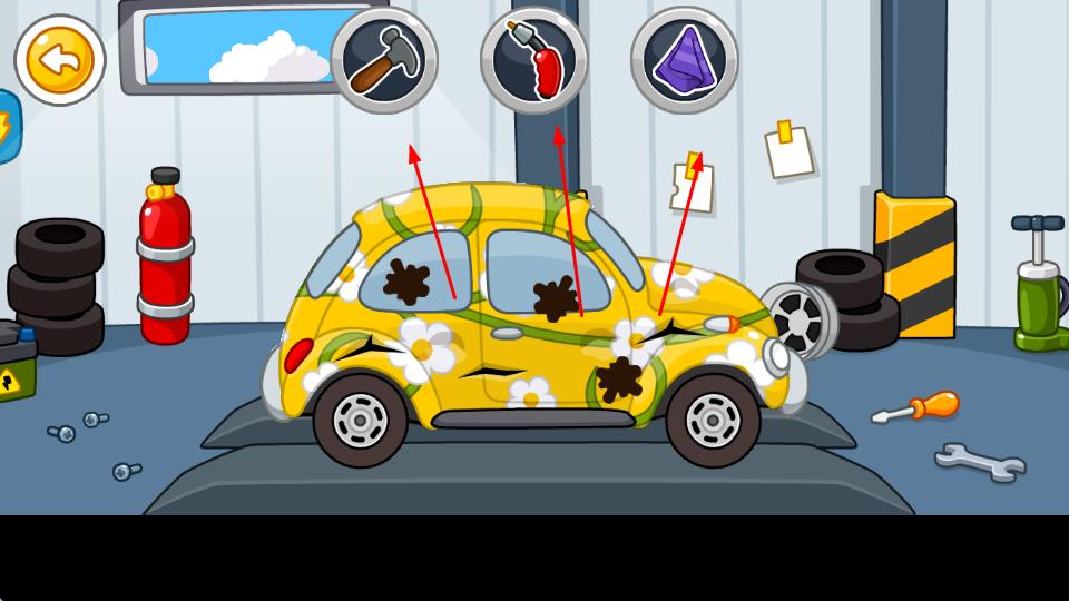 2、车辆修理阶段,第一个是修理坑洞,第二个是修理凹陷,第三个是清理污垢。