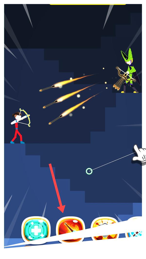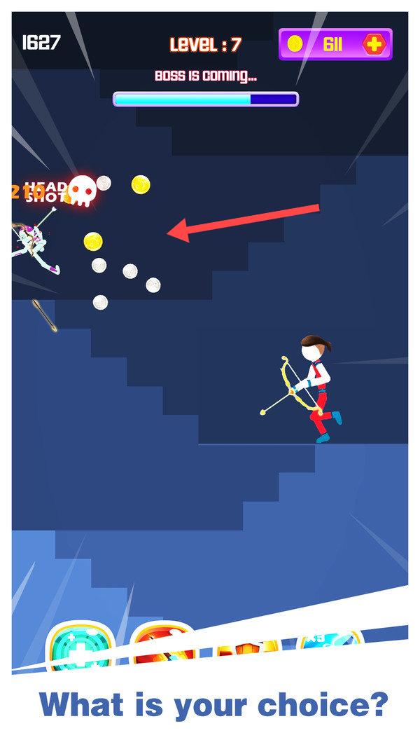 1、拖放射击收集资源:玩家通过拖放屏幕瞄准敌人并射出箭头,在消灭敌人的同时收集大量硬币,这些硬币可用于购买新英雄和升级武器,逐步提升战斗力、