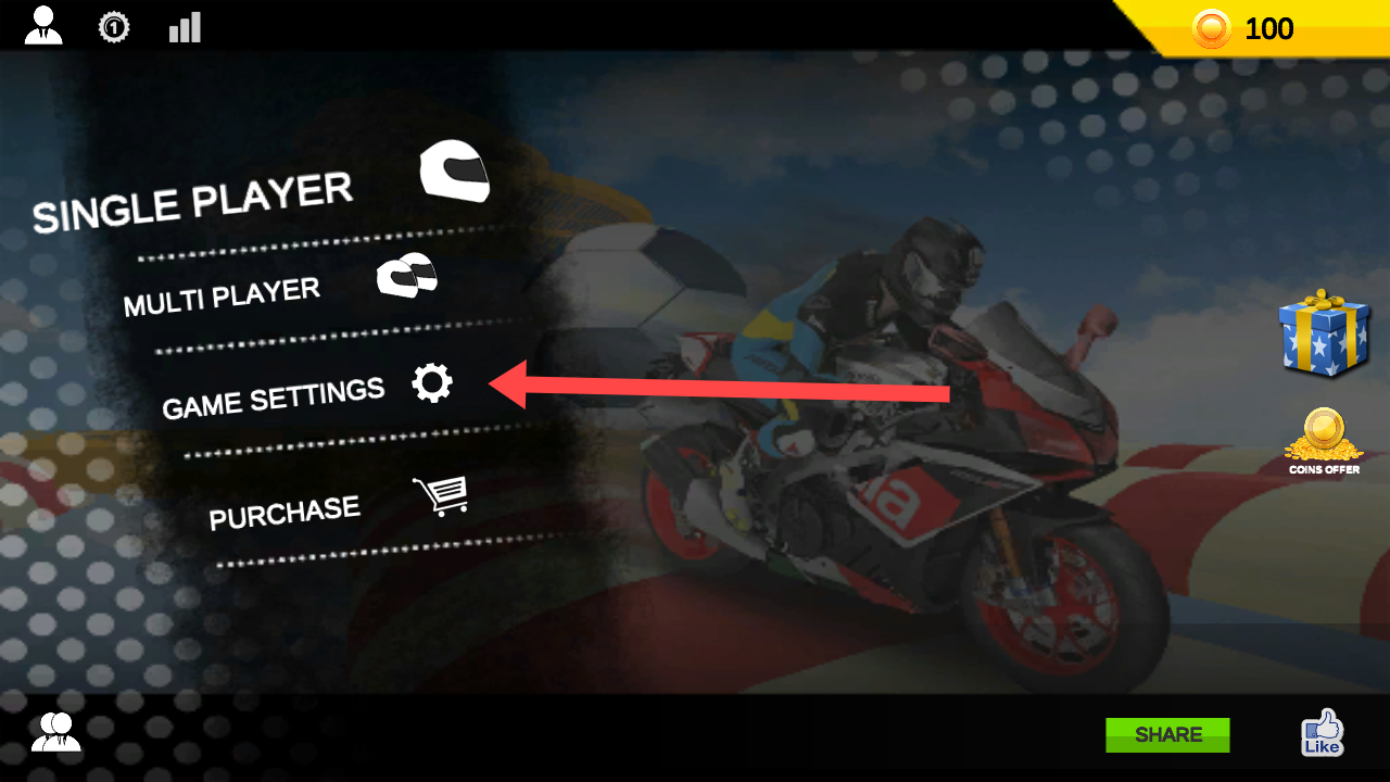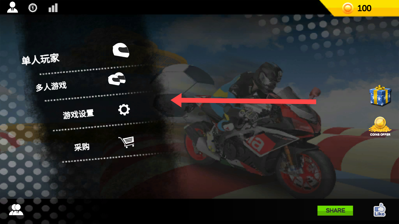 1、首先进入游戏后会看到左边有四个英文选项,第一个是单人模式,第二个是多人模式,我们选择第三个game setting游戏设置。