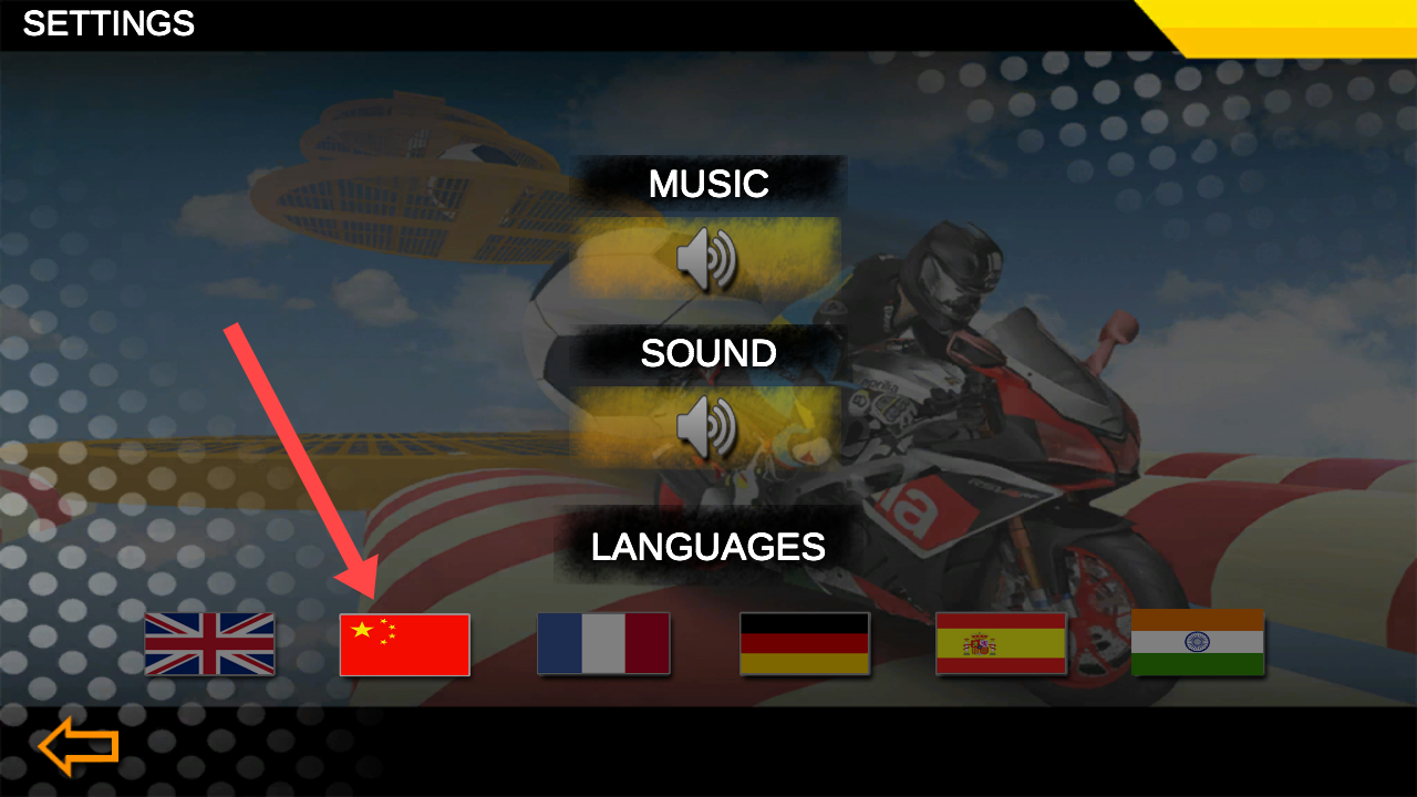 2、进入设置页面,第一个为游戏背景音乐,第二个为游戏音效,第三个就是语言设置,我们直接选择第二个中国。