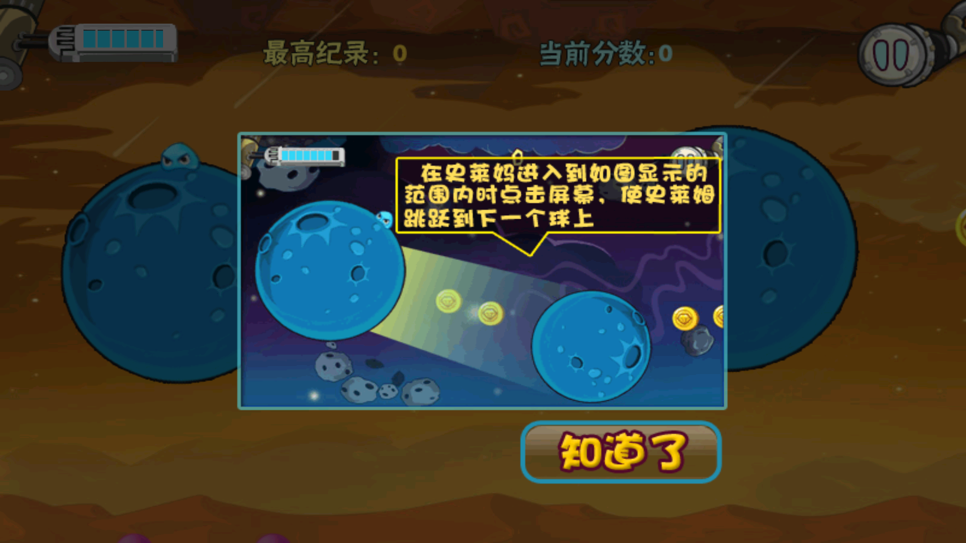 1、根据提示,我们会化身成一个史莱姆,在史莱姆朝向另一个星球的时候,从一个星球跳到另一个星球上。