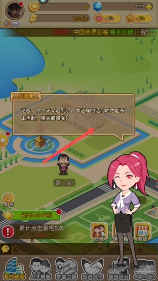 3、进入游戏后,留意【小助理】的提示信息,根据其指引(如东山再起相关任务)开展游戏内的经营或发展活动。