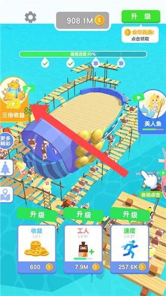 3、点击【三倍收益】图标获取更多奖励,加速资源积累,助力游戏更好地展开。
