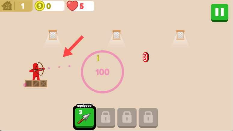 3、操控角色瞄准画面【100】标记区域,精准射箭,尽情体验游戏中的射击挑战乐趣。