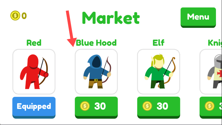 2、进入【Market】界面,查看【Blue Hood】等角色,后续努力赚取金币即可解锁购买。