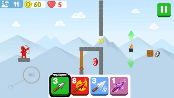 2、能力提升策略搭配:通过金币提升角色能力,解锁强力技能,如增强攻击力、提高箭矢精准度等,合理搭配技能与弓箭特性,以最少箭矢获取最高分数。