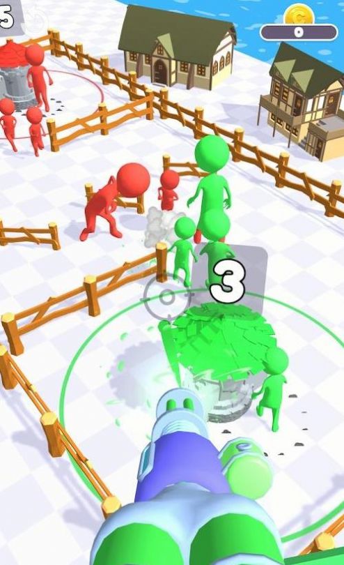 2、射击转换敌人:滑动屏幕瞄准敌人并发射,将自身的颜色覆盖到敌人身上,使其转变为自己的队友。