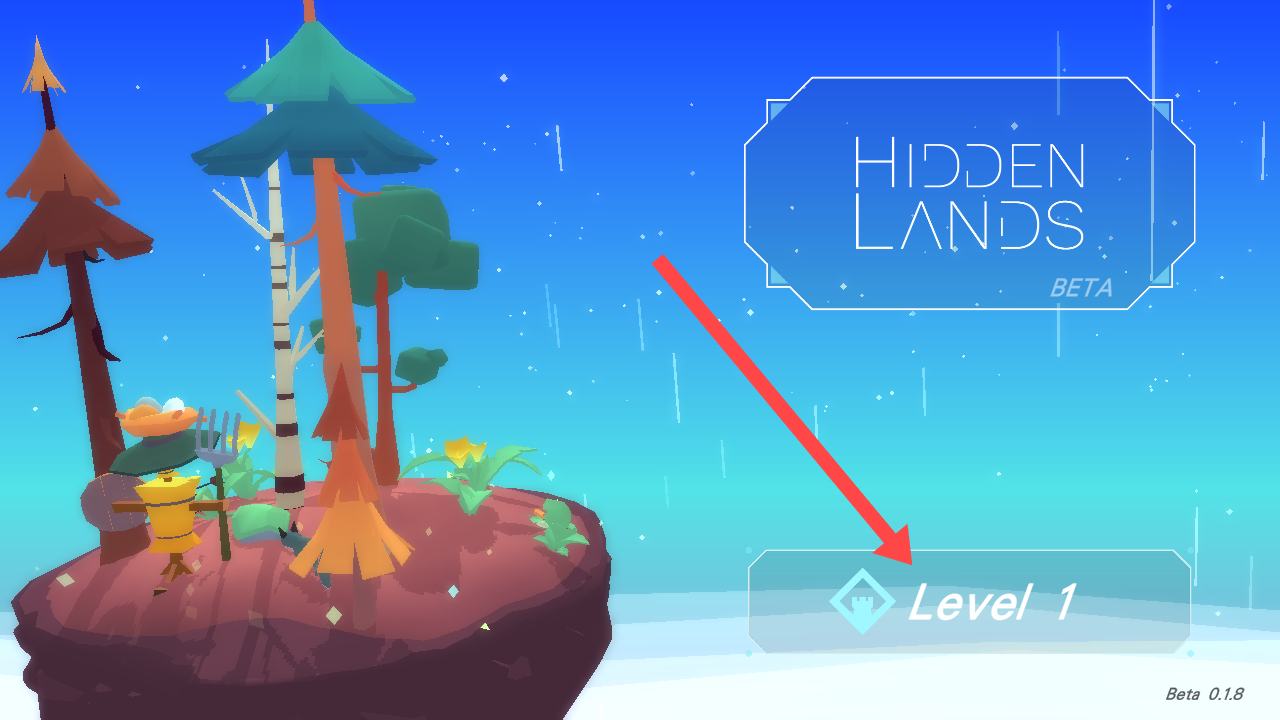 1、进入游戏界面,点击【Level1】按钮,开启“HiddenLands”游戏之旅,进入第一关。