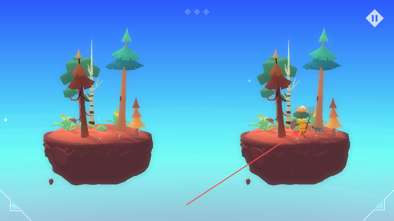 1、基础建造核心流程:进入3D岛屿场景后,首先选择参考模板或空白地块,通过点击拖拽进行地形塑造、建筑放置,同步观察双岛实时对比效果,逐步完成对称化建造目标。