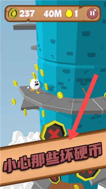 2、前进途中,时刻留意箭头警示,谨慎小心那些坏硬币。这些坏硬币可能会扣除分数或带来阻碍。