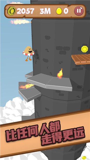 1、基础跑酷操作流程:点击屏幕控制角色跳跃,长按可蓄力实现更高更远腾跃,滑动屏幕调整方向躲避障碍,在不断向上攀爬过程中收集金币与能量道具,为后续关卡积累资源。