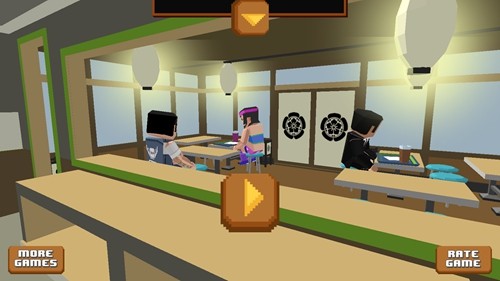 2、在游玩内场景,利用左下角和右下角的【十字方向按钮】操控视角,观察店内顾客动态,熟悉游戏操作布局。