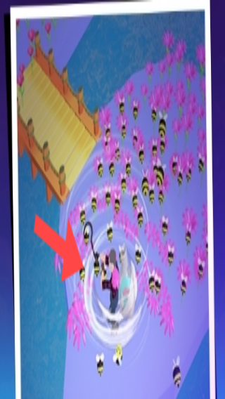 1、游戏中遇到蜜蜂群时,按照【箭头】指示方向移动角色,利用割草等操作驱赶蜜蜂,保障自身安全。