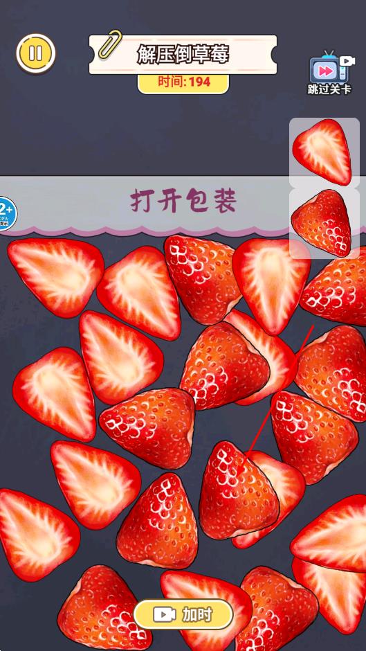 2、在关卡挑战过程中,玩家一边关注时间进度,一边灵活操控角色完成倒草莓、消除元宝等任务,躲避各种阻碍。