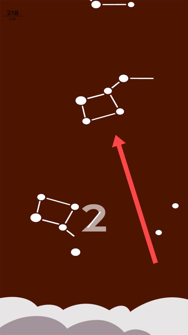 3、依照箭头的指引,让气球靠近白色星座图案并连接节点,使分数达到218,进而完成特定关卡目标。