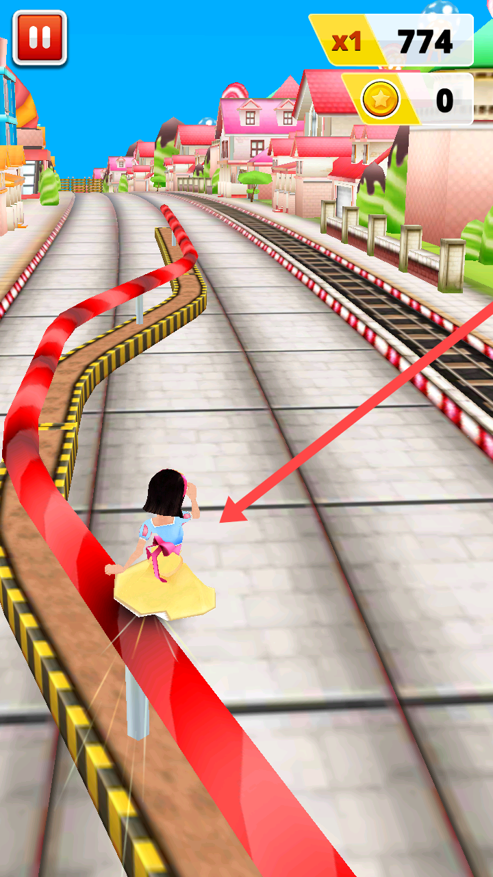 3、障碍躲避挑战:赛道上设置火车地铁等多种障碍物,需保持高度警惕,灵活操作公主跳跃滑铲,考验反应速度与操作技巧,增加紧张感与挑战性。