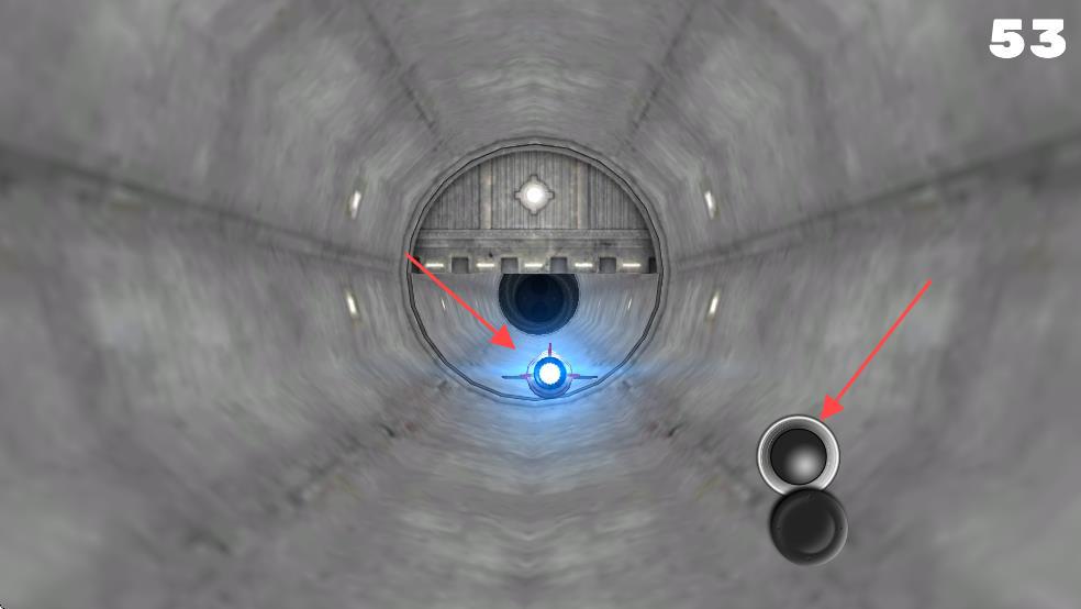 3、游戏时通过屏幕右下角按钮进行操控飞船在隧道中躲避障碍平稳前行去获得更高的分数和成就。