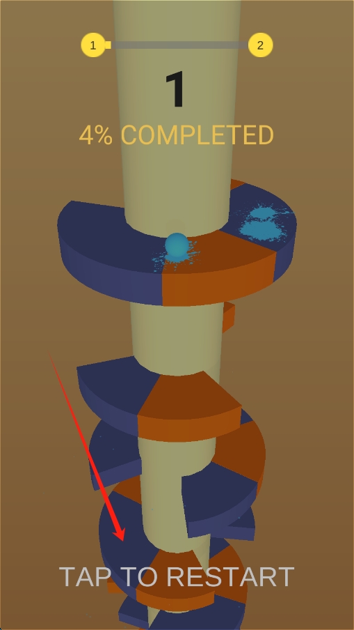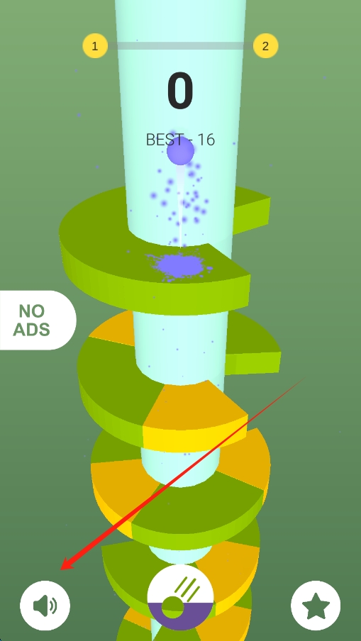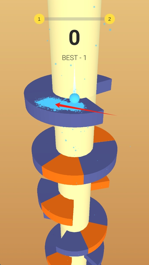 1、操控小球螺旋跳跃:通过点击或滑动屏幕,控制小球的跳跃力度和角度,使其以螺旋方式越过圆环,不断向上跳跃。