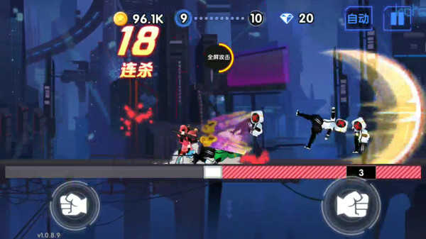 3、连击能量运用:角色连击产生能量点,可使用全屏攻击震飞敌人,合理运用能量点改变战斗局势。
