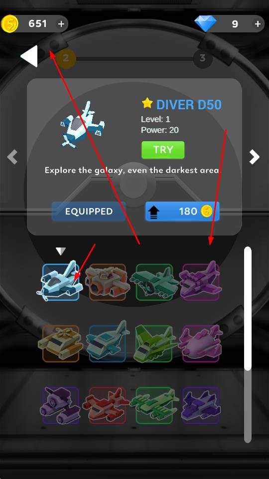 3、每飞一次都可以获得一些金币,金币可以用来购买新的飞机或是升级已有的飞机。