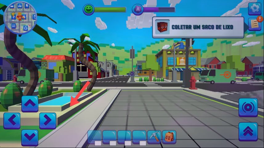 3、游戏内通过左下角方向键移动,按任务提示【COLETAR UM SACO DE LIXO】收集垃圾,完成目标。