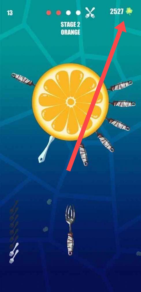 3、进入关卡模式(如STAGE2ORANGE),针对当前目标(橙子)进行操作,同时留意右上角分数与资源数,完成关卡任务。