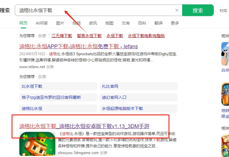 1、在网站上搜索迪格比永恒下载,点开图片标记的链接进入。