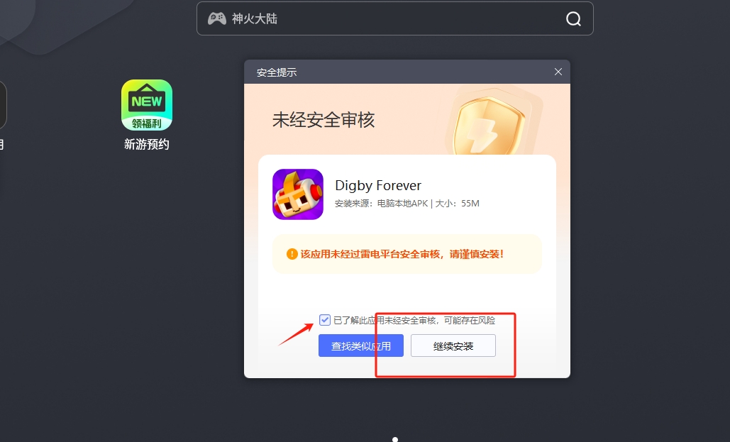 3、将安装包拖入到雷电模拟器,点击已了解此应用,再点击继续安装就可以了。